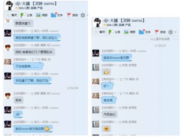 这是一个真实有趣的故事,这是一个奇葩变态的故事,这是一个关于知名无人机企业阴谋大白于天下的故事,今天带你走进一个真实的“不在天上飞却在地上黑“的无人机企业-大疆。 大疆,一个自称无比风光的企业,不以研发及改进公司产品为主营业务,却以水军运营为己任的企业。营销手段奇葩且黑暗,今天带大家一起感受下这个表面光鲜亮丽的公司是怎么游刃有余全方位多角度施展他们的“无敌黑战术”的。顺便@给大疆的创始人兼CEO-汪滔,人间正道是沧桑,汪总回头是岸。 影能做影视套件起家,发迹于星云陀螺稳定器,是中国第一个做手持陀螺稳定器的厂商,近期推出ROXOR睿派增稳摄像机。大疆做无人机起家,也发迹于无人机,在星云之后近一年推出如影陀螺稳定器,于近期推出OSMO灵眸云台摄像机。背景真实有效,有据可查,如有做假,品牌倒塌。 先给大家展示一张图 大家看看这个是什么?有人说了,这不就是你们公司的两个ROXOR睿派QQ群吗? 呵呵~亲~你好傻好天真哦~错!且大错特错!左边的群号为371280406的“影能ROXOR睿派交流群”的确是我们自己建立的新产品正统官方群,而另外一个群号为516286721的”影能ROXOR官方指定群“则是由大疆水军建立的李鬼假群!这个群每个管理员,如“影能-售后”“影能超级无敌大粉丝”等等全部都与影能公司及员工无任何关系,都是大疆的水军团队自行编撰的。大疆水军团偷梁换柱,悉心上演了一台假冒影能ROXOR官方QQ群的戏。擦!一千万个草泥马在奔腾啊! 图:和影能根本没有关系的影能假群以及冒充影能售后及粉丝的管理员们 奇葩另类是吧?那又有人要问了,大疆这么大公司为什么要黑影能,还山寨影能群,建立一个竞争对手公司的QQ群?因为这就是大疆日常对付所有竞争对手的通用技能啊,因为担心自己价格高昂品质却遭人诟病的OSMO产品因为影能的新品ROXOR卖不动啊,因为要以他们无比黑暗的手段拉不明情况的影能用户进群以便各种诋毁啊,因为担心火箭式发展的影能撼动他们啊,因为无人机市场竞争激烈自己的地位岌岌可危必须要和其他领域的企业抢饭吃啊~说到这里,相信大家依然是半信半疑,心中疑云密布对吧?来,让我们回顾下案发现场…… 这位QQ号971760732的薯条等等一众,很早就潜伏进影能ROXOR的群,尤其薯条懂技术懂产品懂市场懂潜伏。插播一句,大疆你究竟有多少水军?他们原来真的不是活跃在横店的专业演员吗? 图:几个主导影能假群的众多水军之四 水军团们在影能ROXOR上市第一周就迅速组团进入了影能新建的ROXOR群,各种打探消息刺探军情,大黑加小黑,企图阻止订单高速增长的ROXOR睿派。话说大疆产品暴利售后暴利就是好,有好多闲钱养水军团。影能ROXOR群水军比用户还多,赶上热闹的时候经常看见大疆水军在影能群中刷屏。而为了隐身在群中更久,水军们也是蛮拼的。一起来围观演技吧! 图:混在影能群中假装用户的薯条